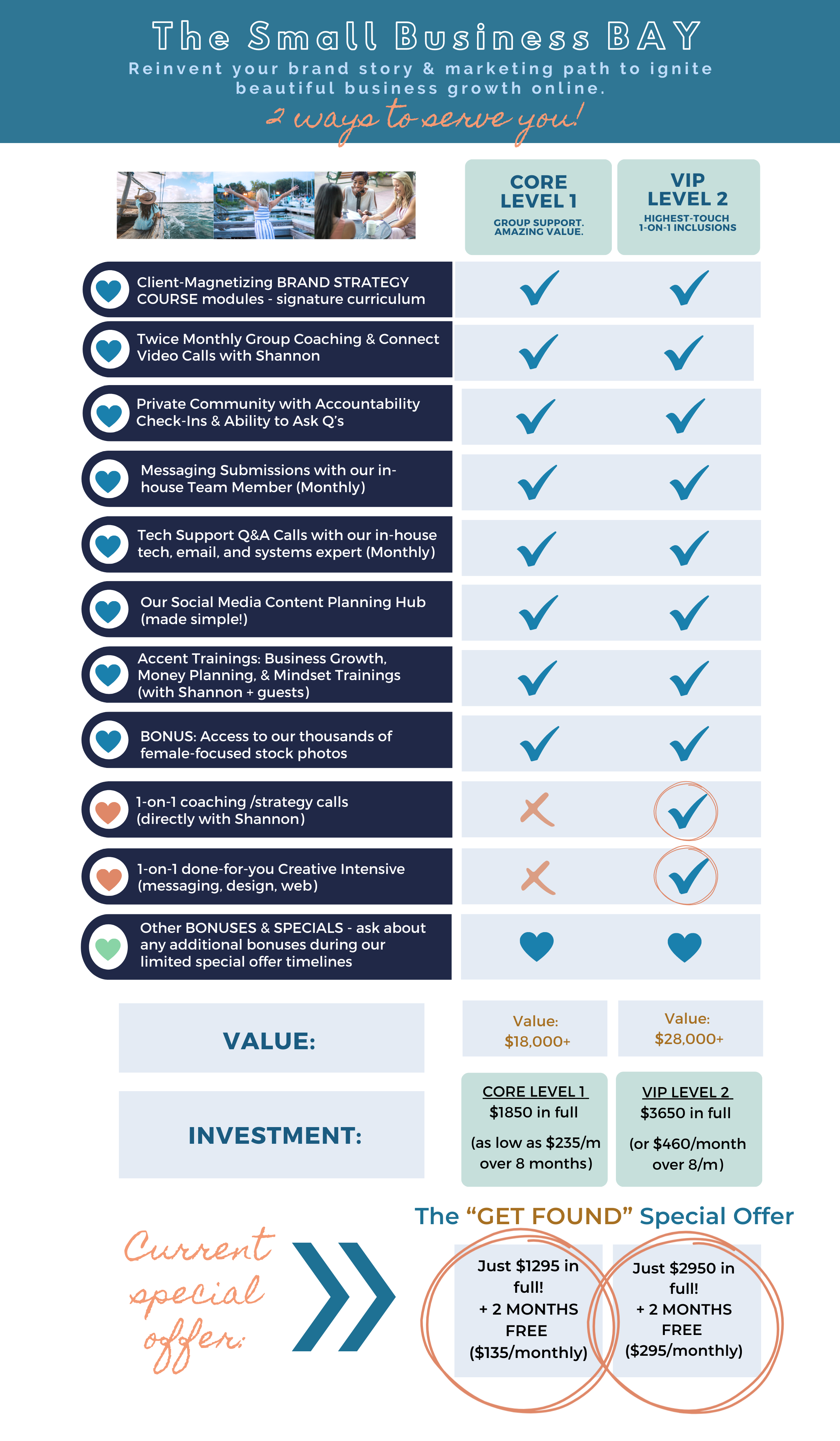 Intentionally designed to feel like a breezy online space to “tuck away from the waves” while you transform your brand, marketing, & business journey, so you can re-emerge more-aligned and more client-magnetizing than ever before.