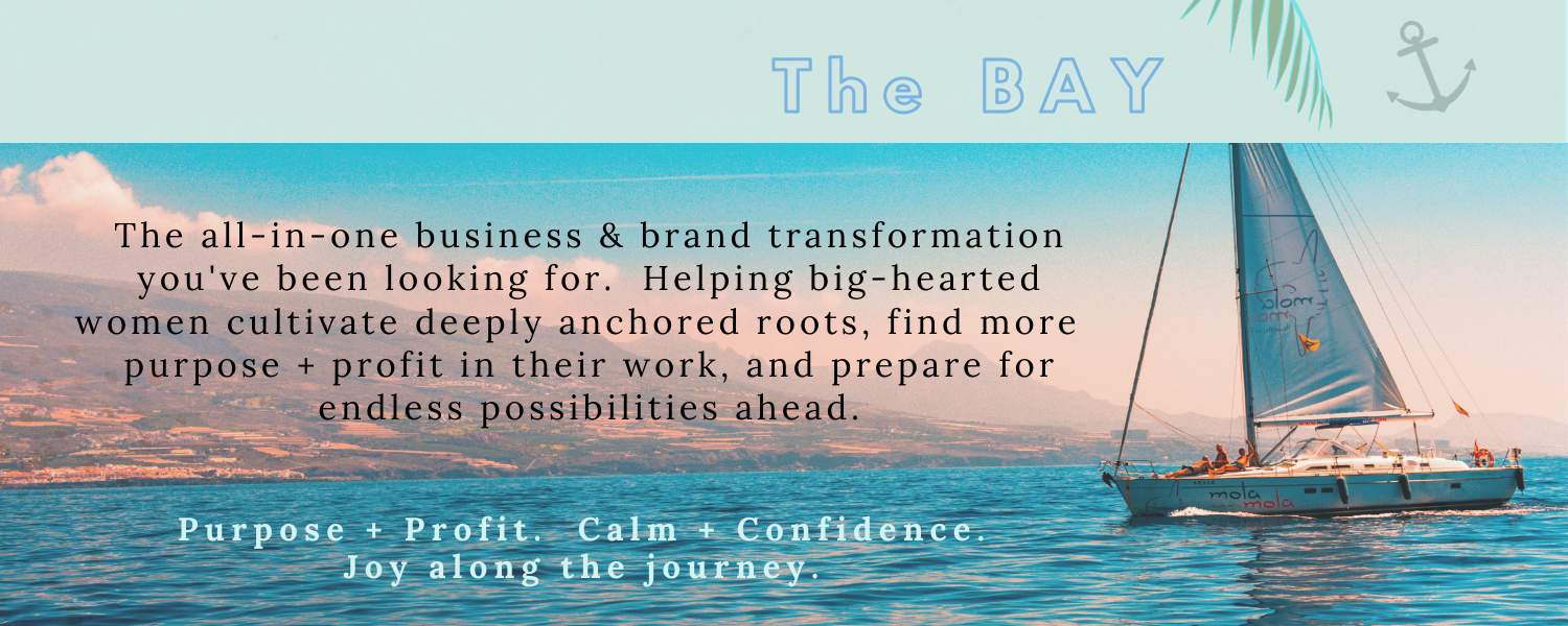 We also know that when you invest money here at The Bay, you are not just paying to work toward a “finished online business presence” — you are investing in accountability, peace of mind, years of our own training multiplied (& the thousands of dollars we’ve spent on coaches & marketing expertise ourselves!), new community, people pushing you to the finish line, a sense of mental wellness & encouragement, and elements of professional-level creative services (GOLDEN!!) — all in one beautiful, cozy experience.